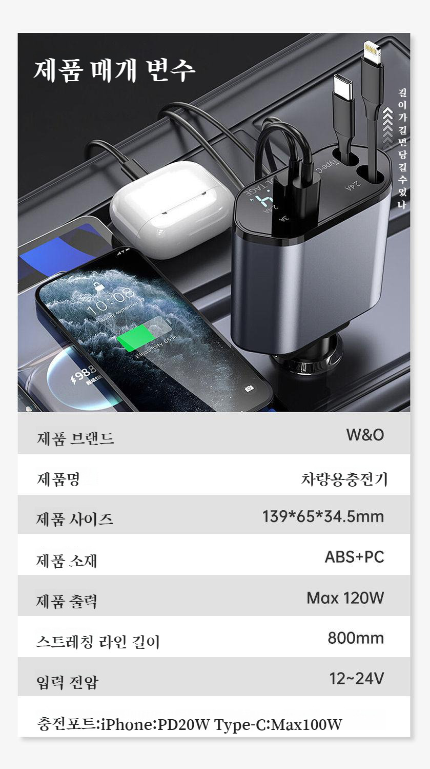● 180° 회전 기능으로 차량 내 어디서나 편리하게 충전할 수 있어 운전 중에도 손쉽게 사용 가능합니다.