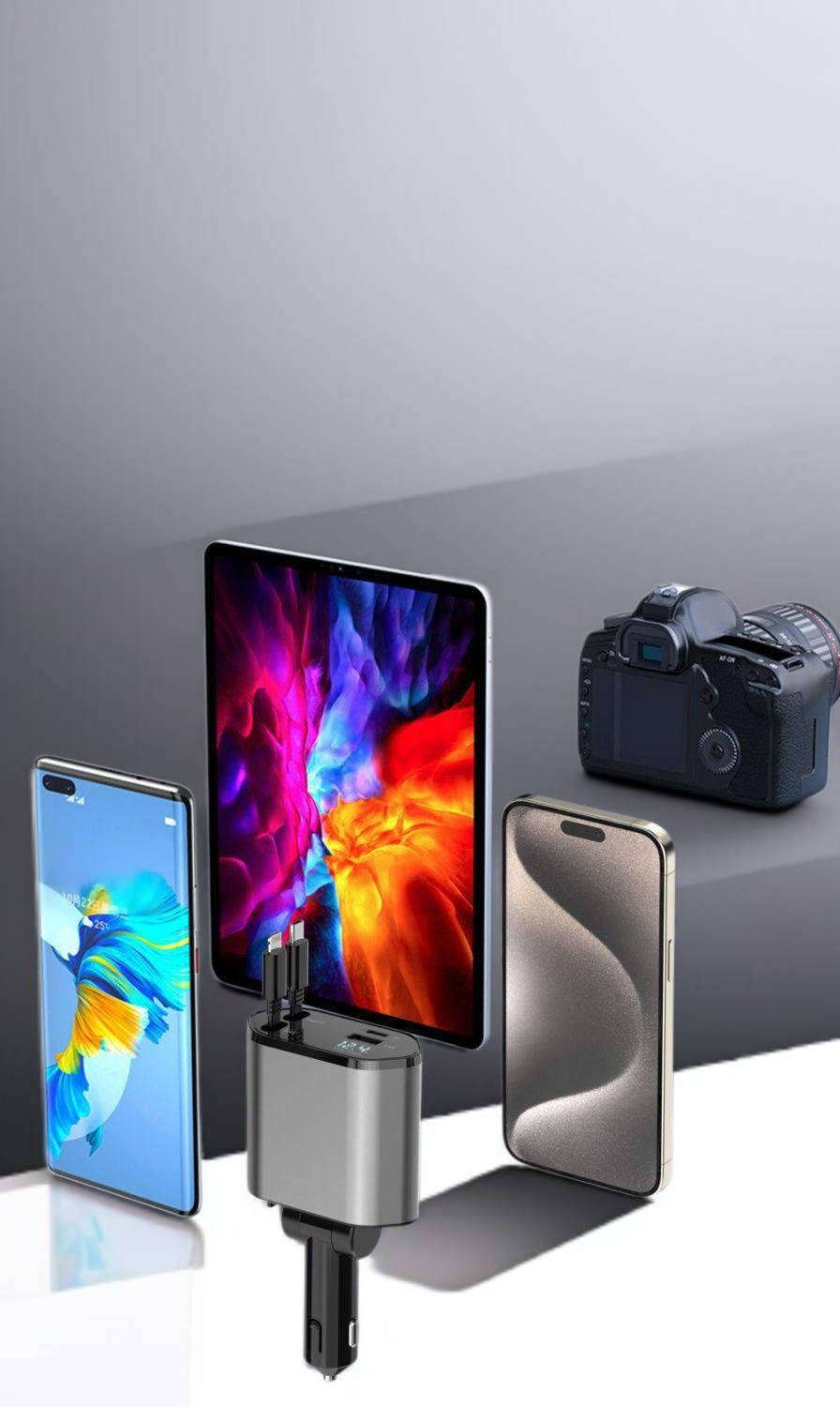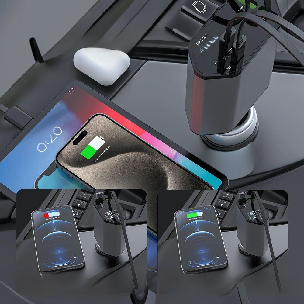 쿼드 인치 180° 회전 차량용 충전기 충전기 차량용 급속 충전 간편 쿼드 인치